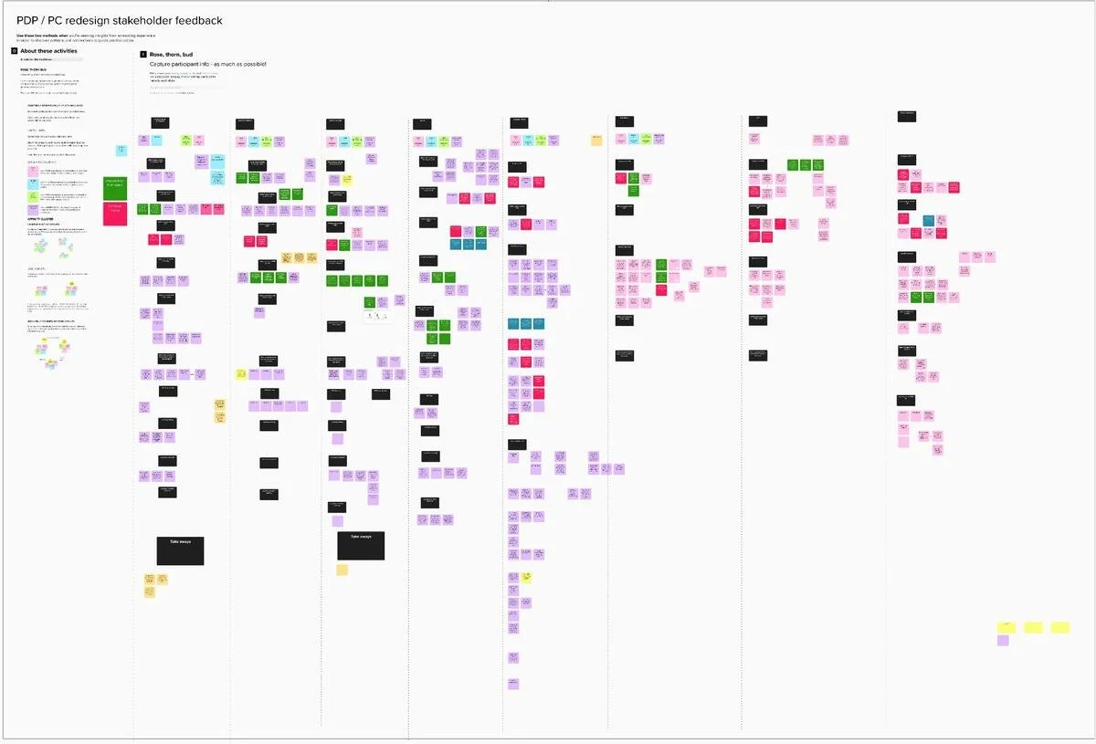 With the ecosystem mapped, I conducted 1:1 deep-dive interviews with each stakeholder group to understand their unique business needs, use cases, and how customers interact with product cards and PDPs in their specific feature spaces.